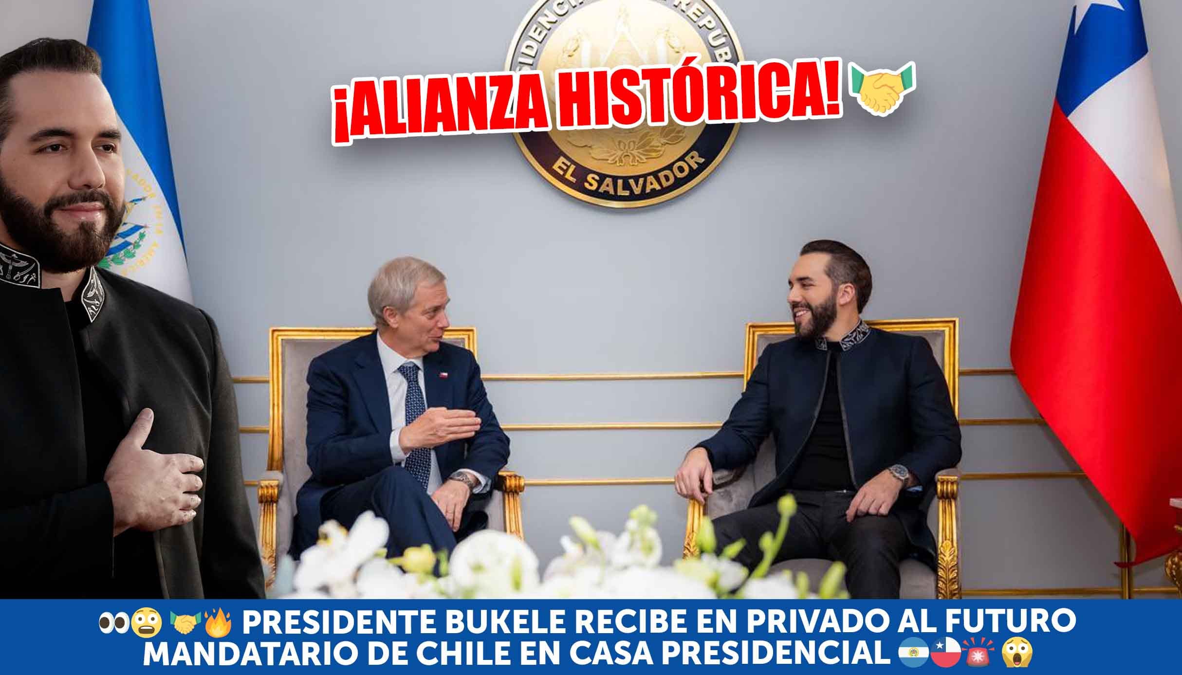 ¡ALIANZA HISTÓRICA! 🤝🔥 PRESIDENTE BUKELE RECIBE EN PRIVADO AL FUTURO MANDATARIO DE CHILE EN CASA PRESIDENCIAL 🇸🇻🇨🇱